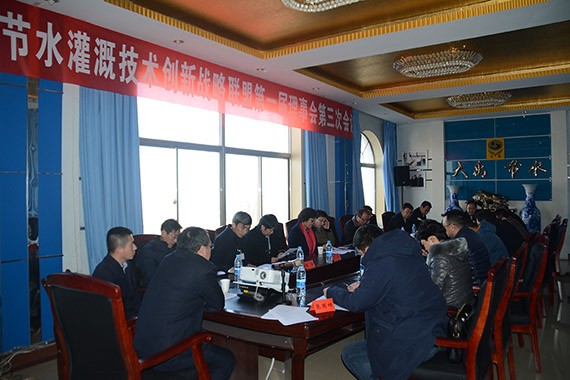 2016年12月6日,节水灌溉产业技术创新战略联盟一届三次理事会议在大禹节水集团公司顺利召开?;嵋橛山谒喔炔导际醮葱抡铰粤烁泵厥槌?、中国水科院水利所副所长杨继富主持,来自节水灌溉产业技术创新战略联盟20多家成员单位的30多名代表参会。